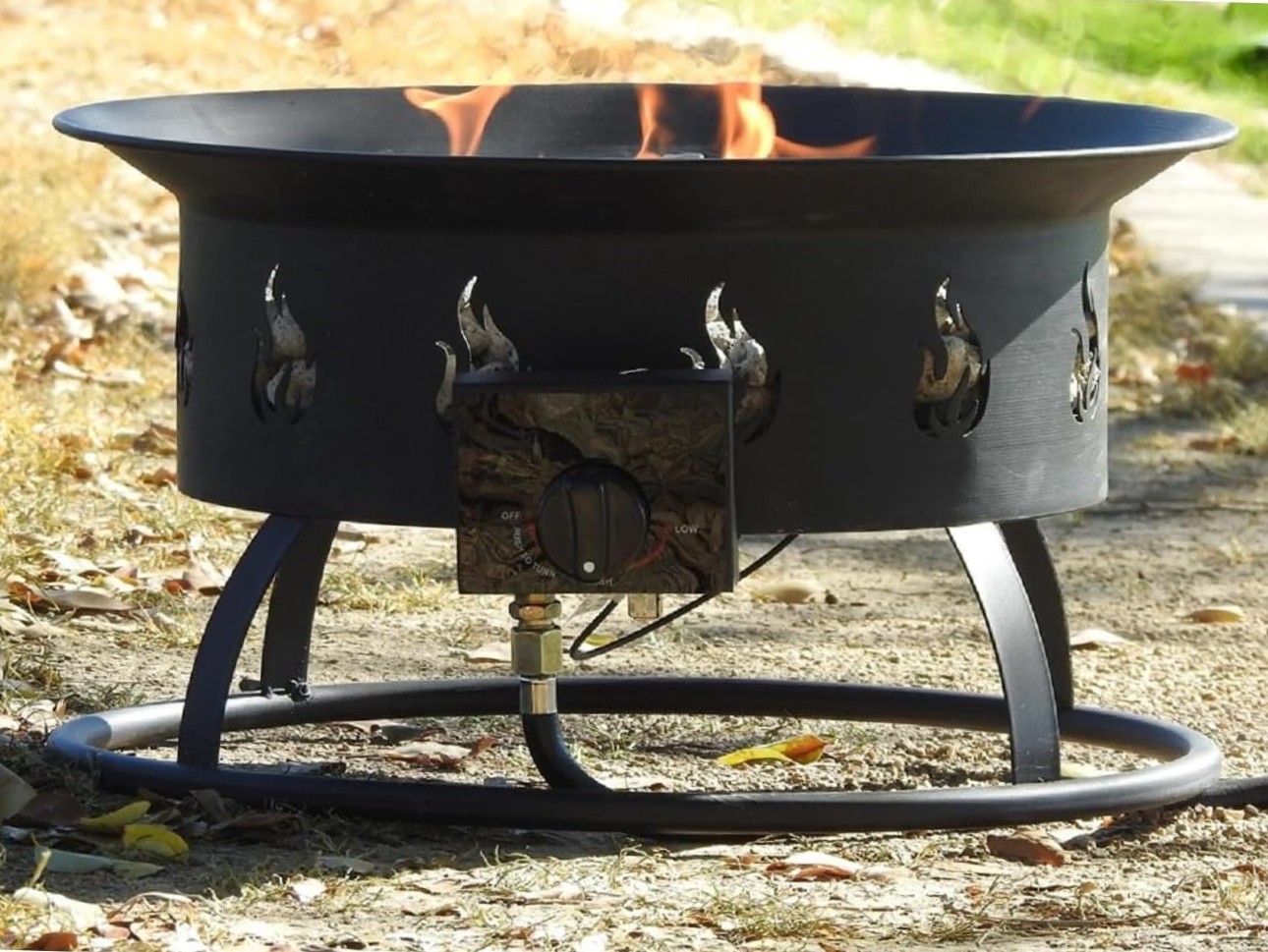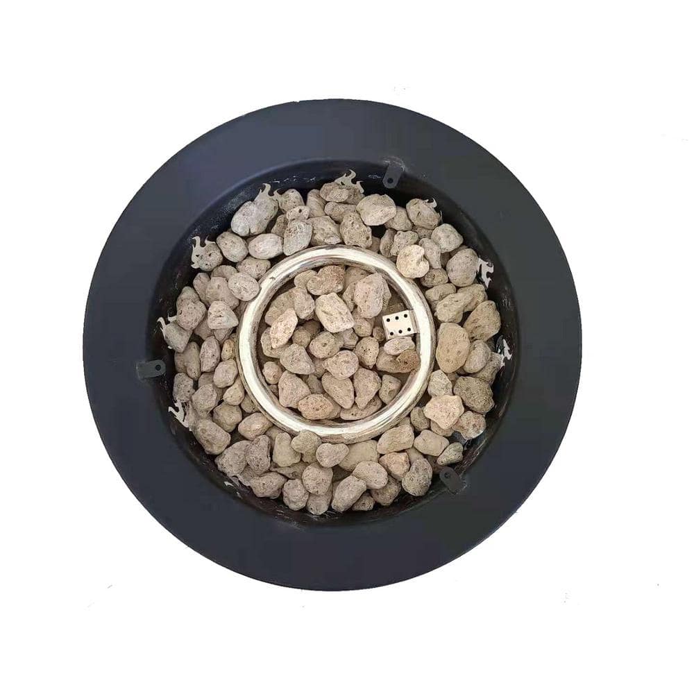 | AZ Patio Round Portable Camp Fire Pit in Black | 40,000 | Solid Round Base Burner Lid with handle Pumice Stones included | Variable control Piezoelectric ignitor 10 ft hose and regulator | 1 year limited | This product can expose you to chemicals including Lead and Lead Compounds, which are known to the state of California to cause cancer, and Carbon Monoxide, Lead and Lead Compounds which are known to the state of California to cause birth defects or other reproductive harm. For more information go to www.P65Warnings.ca.gov |