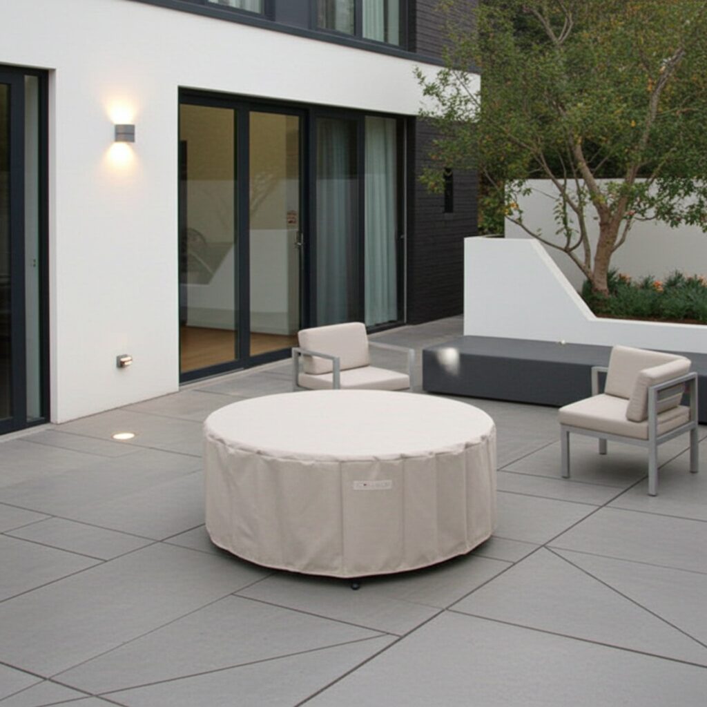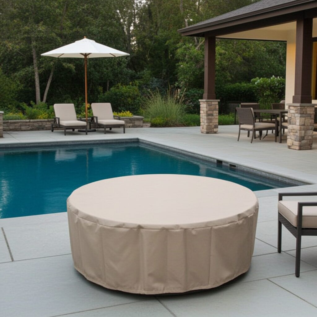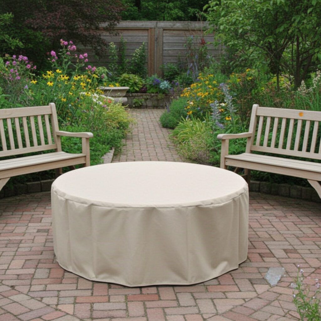 Help keep your firepit looking beautiful with the heavy duty round fire pit cover. Constructed of heavy duty 210D fabric, this cover will help keep moisture from decaying your fire pit. The heavy duty zipper makes it a breeze to open and install your cover. 48″ Round diameter to protect the larger round firepits. 23″ Height to protect your firepit from top to bottom. A neutral tan color is sure to blend in with your outdoor oasis.