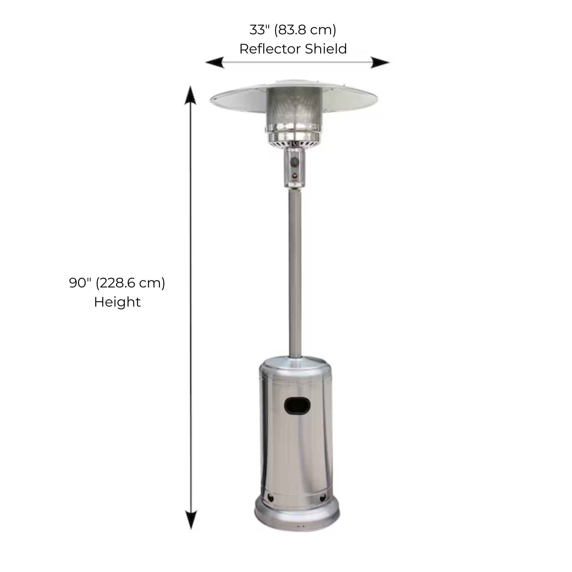 90″ Tall Commercial Patio Heater w/ 33″ Shield: Black powder coat finish.