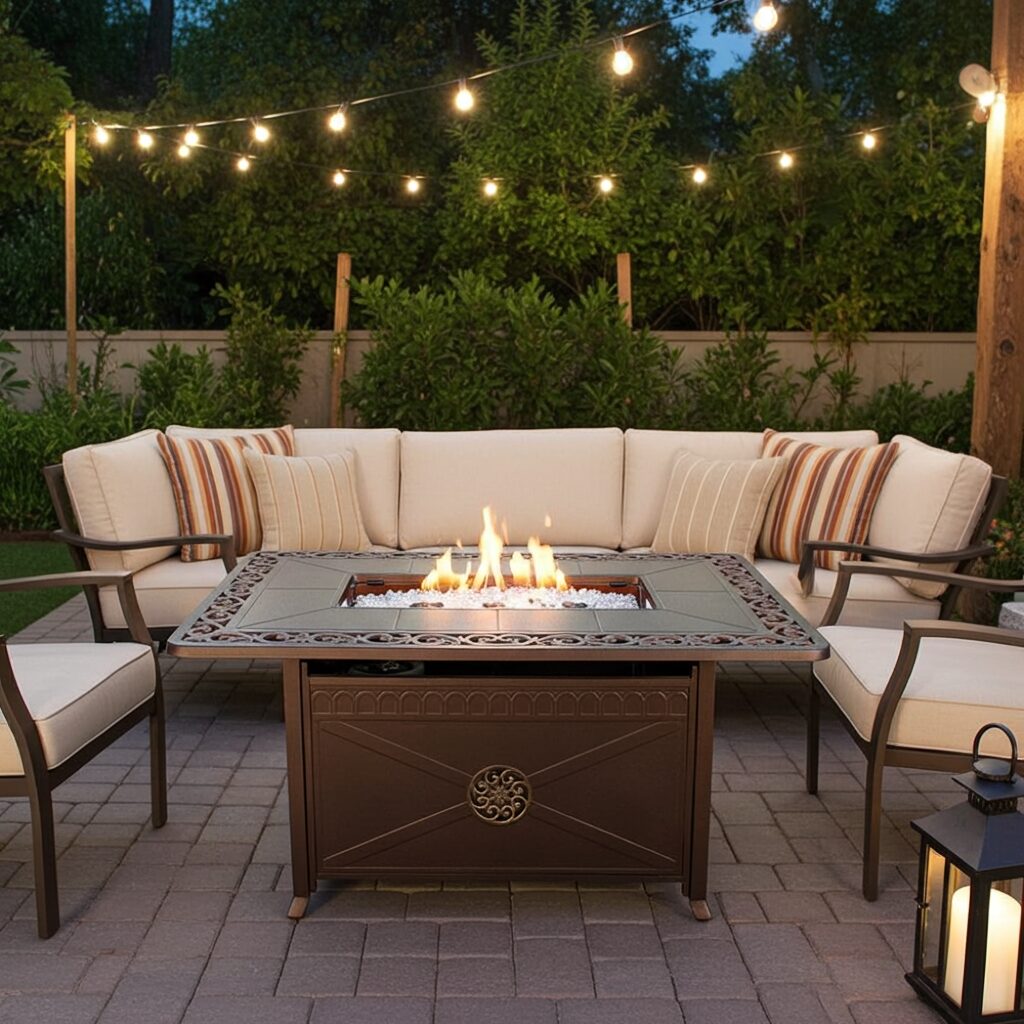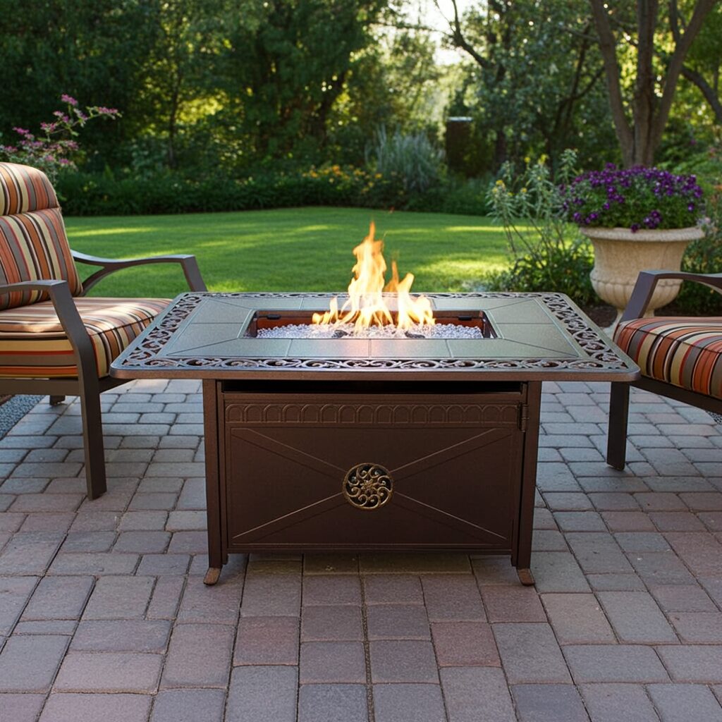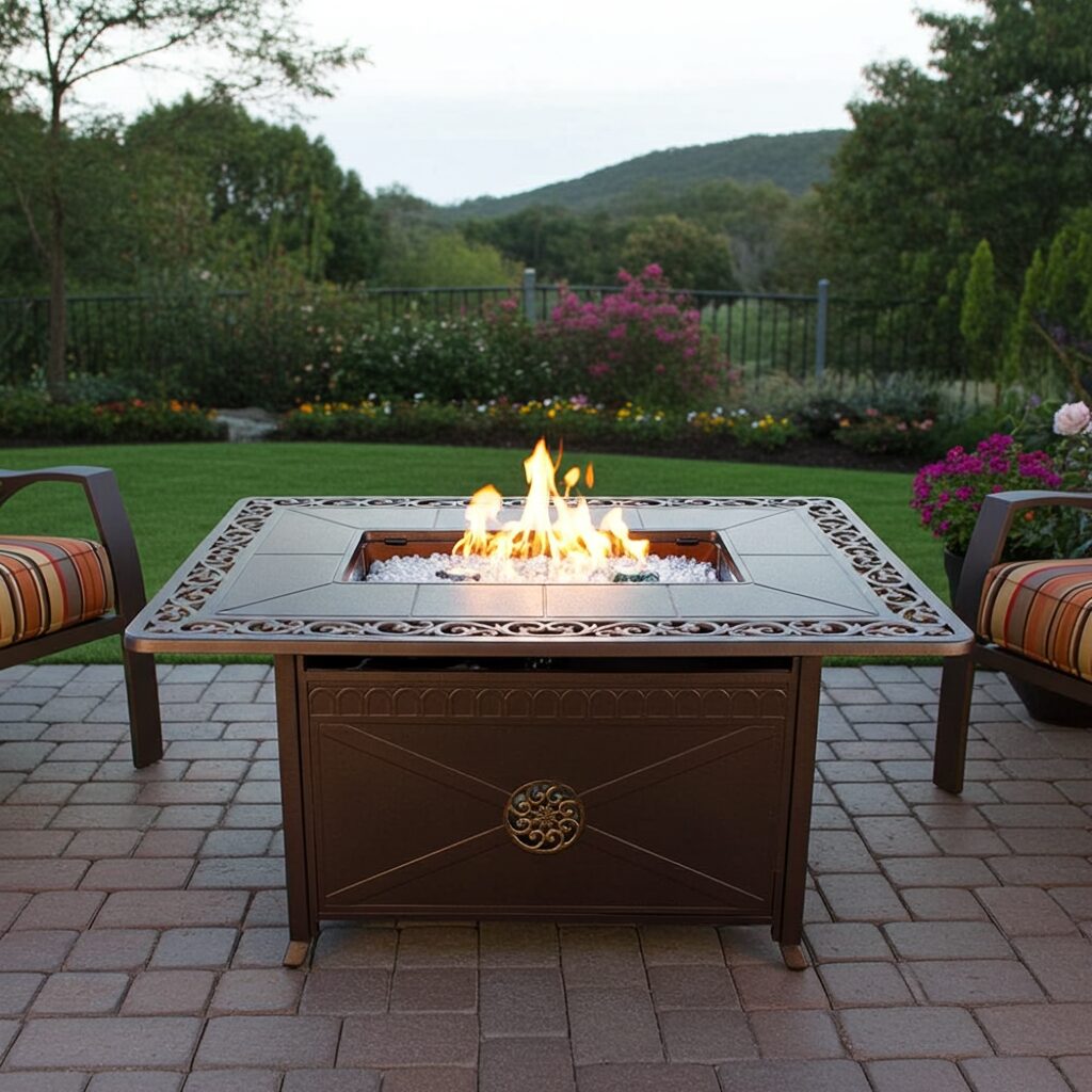 Thistle Outdoor Propane Aluminum Fire Pit with Scroll Design