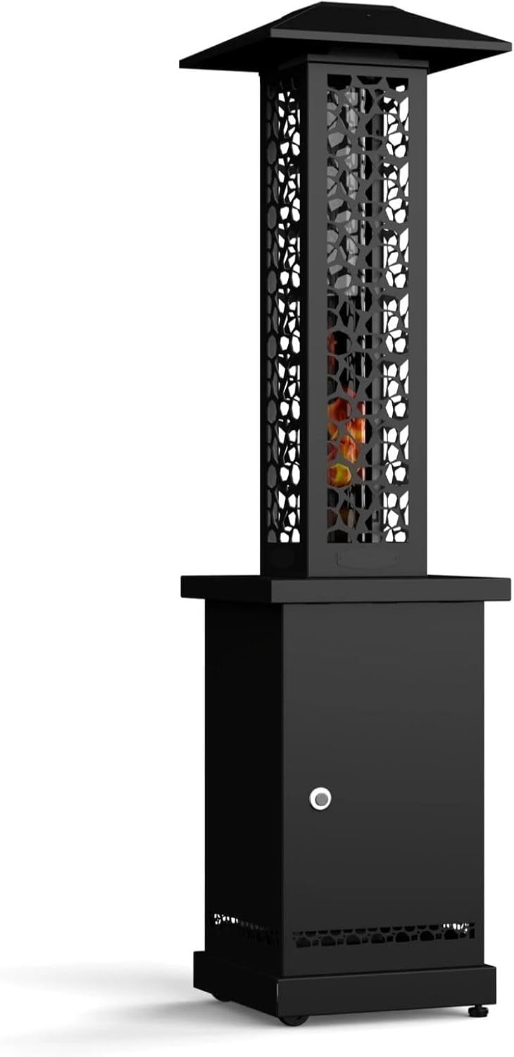 The wood pellet glass tube patio heater will keep you warm from head to toe. it is designed not only to produce radiant heat, but to provide a beautiful fire for family and friends to watch. Requiring no electricity, this heater’s flame is powered only by gravity and the draft created from the glass tube. Using wood pellets as a low carbon alternative fuel is perfect when compared to the high price and inefficiency of propane. The beautiful matte black heater will produce twice the amount of BTU’s than propane while operating at less then half the cost. Enjoy a great night with the family while staying warm.